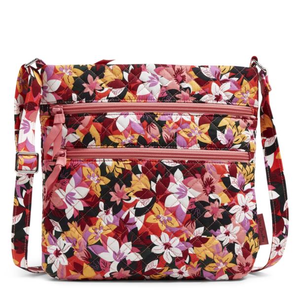 The ultimate in hands-free organization, this clever crossbody features three separate zippered compartments. Made from our Recycled Cotton! Made from 100% cotton, it's everything you know and love about our go-to fabrication - the softness, the comfort, the vibrancy - now crafted with reclaimed fibers. Exterior features one slip pocket and two zip pockets. Interior features two slip pockets and one zip pocket. Zip closures. 11.75" w x 11.75" h x 1.25" d with 56.0" adjustable strap