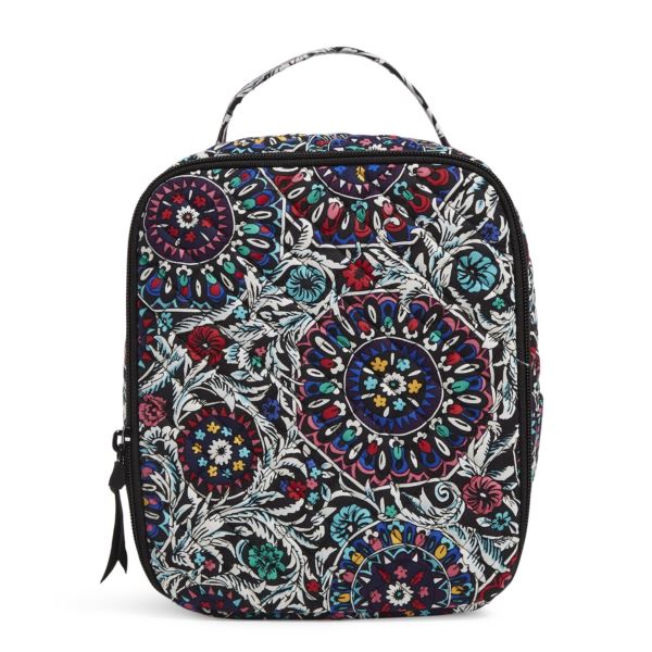 Keeps snackables and packables from getting squished during your commute. Features a clear ID window on the exterior; interior slip pocket and zip closure. The very best feature? This style is made from Vera Bradley's new Recycled Cotton! Made from 100% cotton, it's everything you know and love about Vera Bradley's go-to fabrication - the softness, the comfort, the vibrancy - now crafted with reclaimed fibers. 7.5"W x 9"H x 4.25"D with a 2" handle drop.