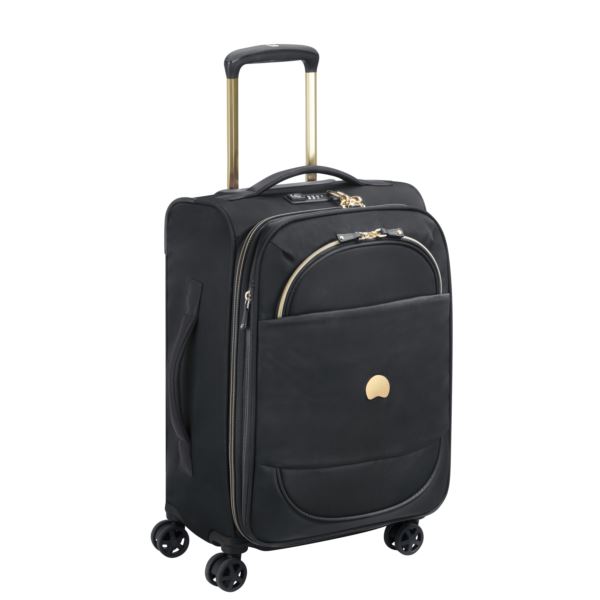Expand your Montrouge collection to include this stylish expandable spinner carry-on. The women's bag is equipped with many features including gold metal accents, vegan-leather trim and stylish interior print as well as double spinner wheels and a roomy interior. The interior lining is removable and washable (delicate cycle) for maximum convenience. Your luggage will stay safe and in-tact due the integrated TSA-accepted lock as well as DELSEY patented zip SECURITECH® technology that makes it 3 times stronger than a standard zipper.
