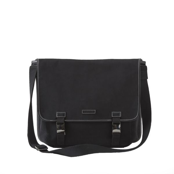 Sloan Messenger available in Brushed Microfiber with tattersal plaid flap lined with red polyester. Trimmed in Italian leather. Main compartment has zipper pocket and multiple slip pockets. 15 inch zipper laptop pocket on back for easy access. Front has a hidden zipper pocket. Gunmetal push lock closure. 16.5" X 4.25" X 13"