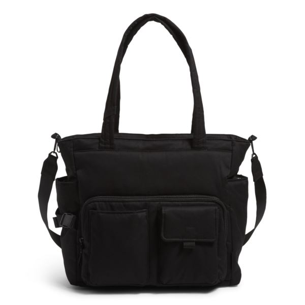 Carry as a tote or wear as a crossbody. Made from Vera Bradley's new Recycled Cotton, the function-focused Utility Collection features an unquilted finish and Vera Bradley's first-ever solid cotton colors! Exterior has a front slip pocket, a front flap pocket, front zip compartment (with 2 slip pockets inside), 2 side slip pockets, and a back slip pocket; interior has a zip pocket; fabric loop on strap; webbing loop on left side of bag; buckle details; zip closure. 14.75"W x 13.5"H x 5"D with an 11" strap drop and 39" removable strap.